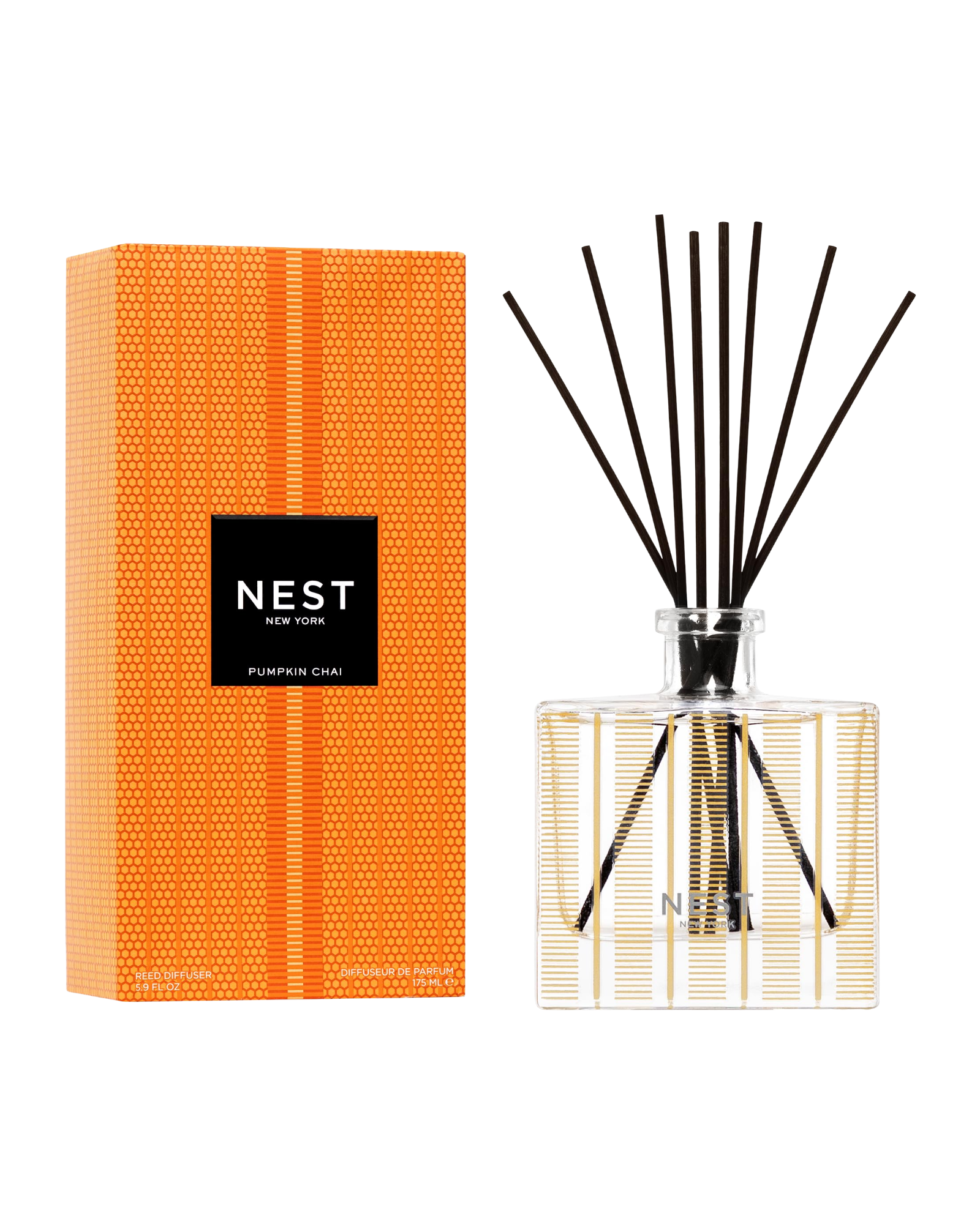 Create a cozy autumn ambiance with this exquisitely fragranced Reed Diffuser featuring a blend of wild pumpkin, spicy masala chai, cardamom, ginger, and cinnamon