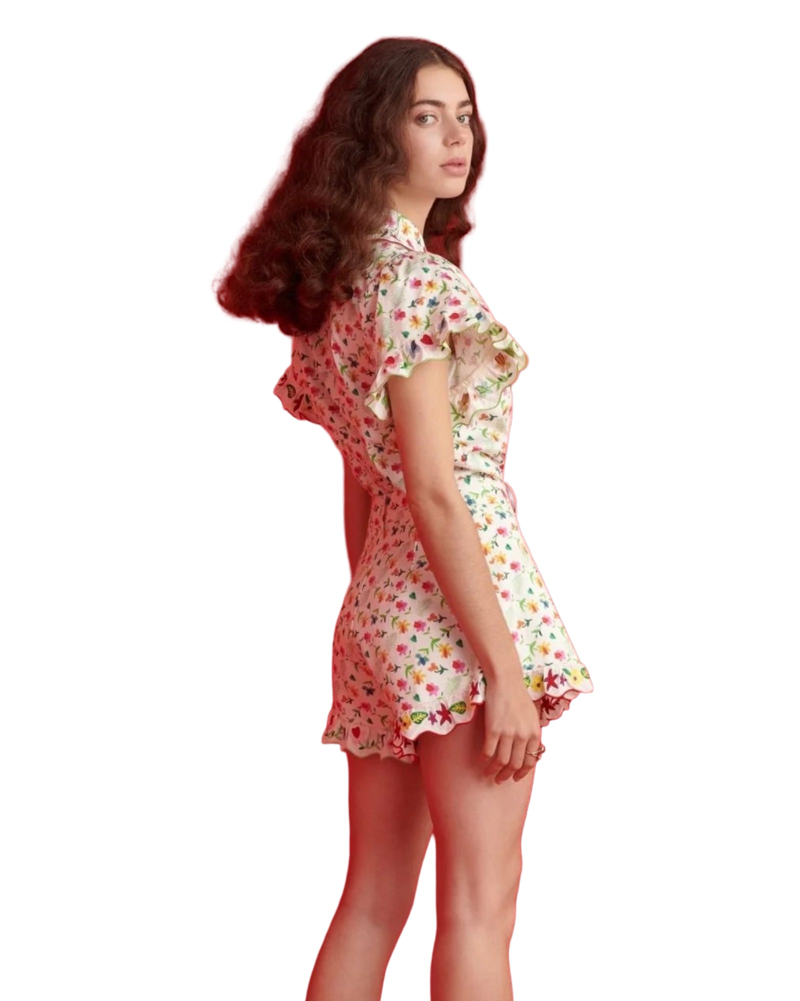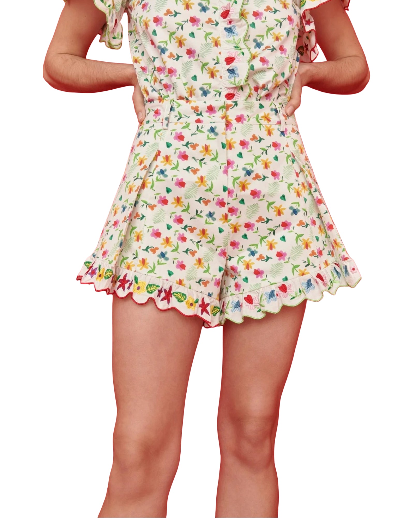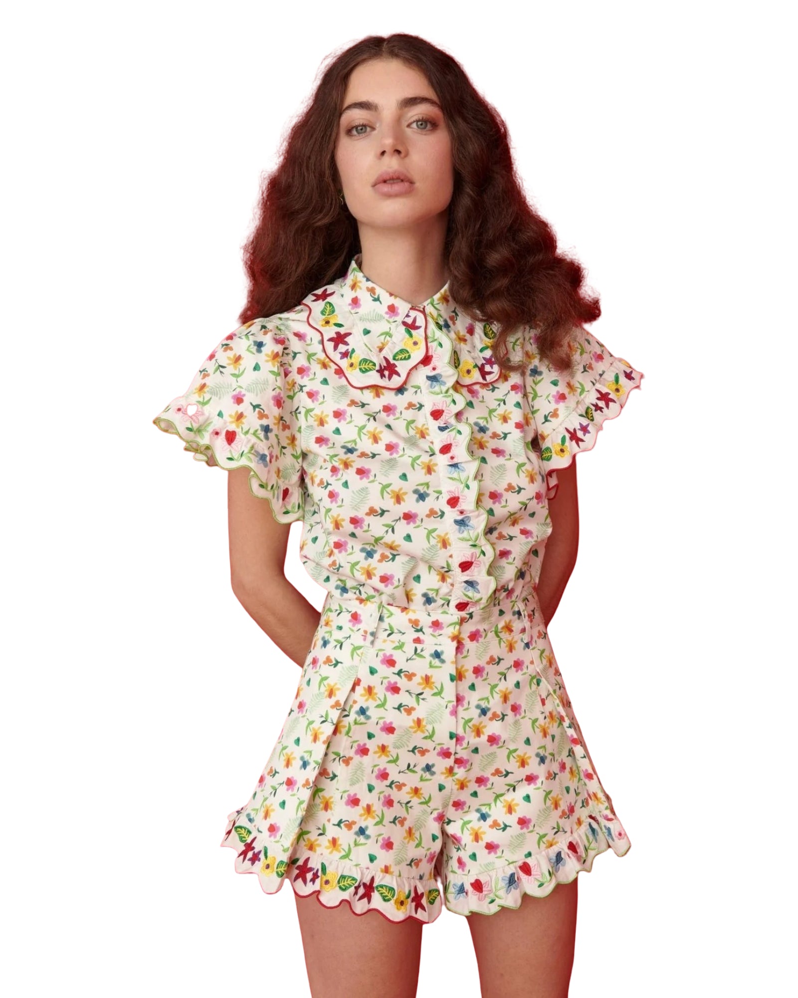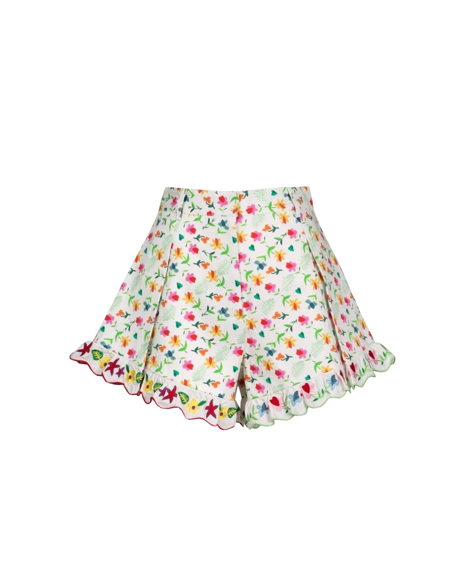 • Scalloped hem trimmed with vibrant hearts and flowers