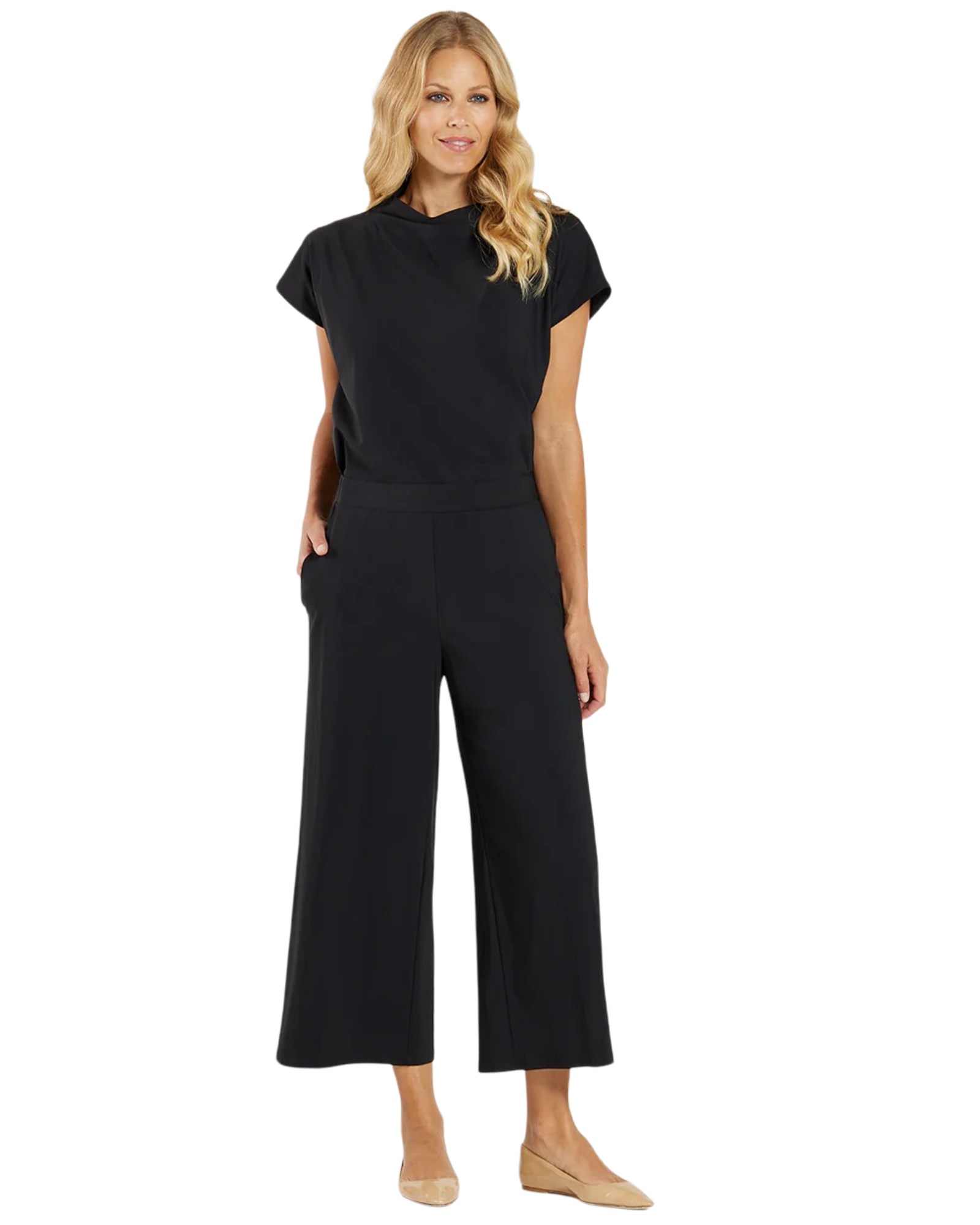 Our new wide leg cropped pant features a playful design that is perfect for summer and fall! With pockets and a chic silhouette, these pants offer both comfort and style. Paired with our Jude Connally Tillie Top.