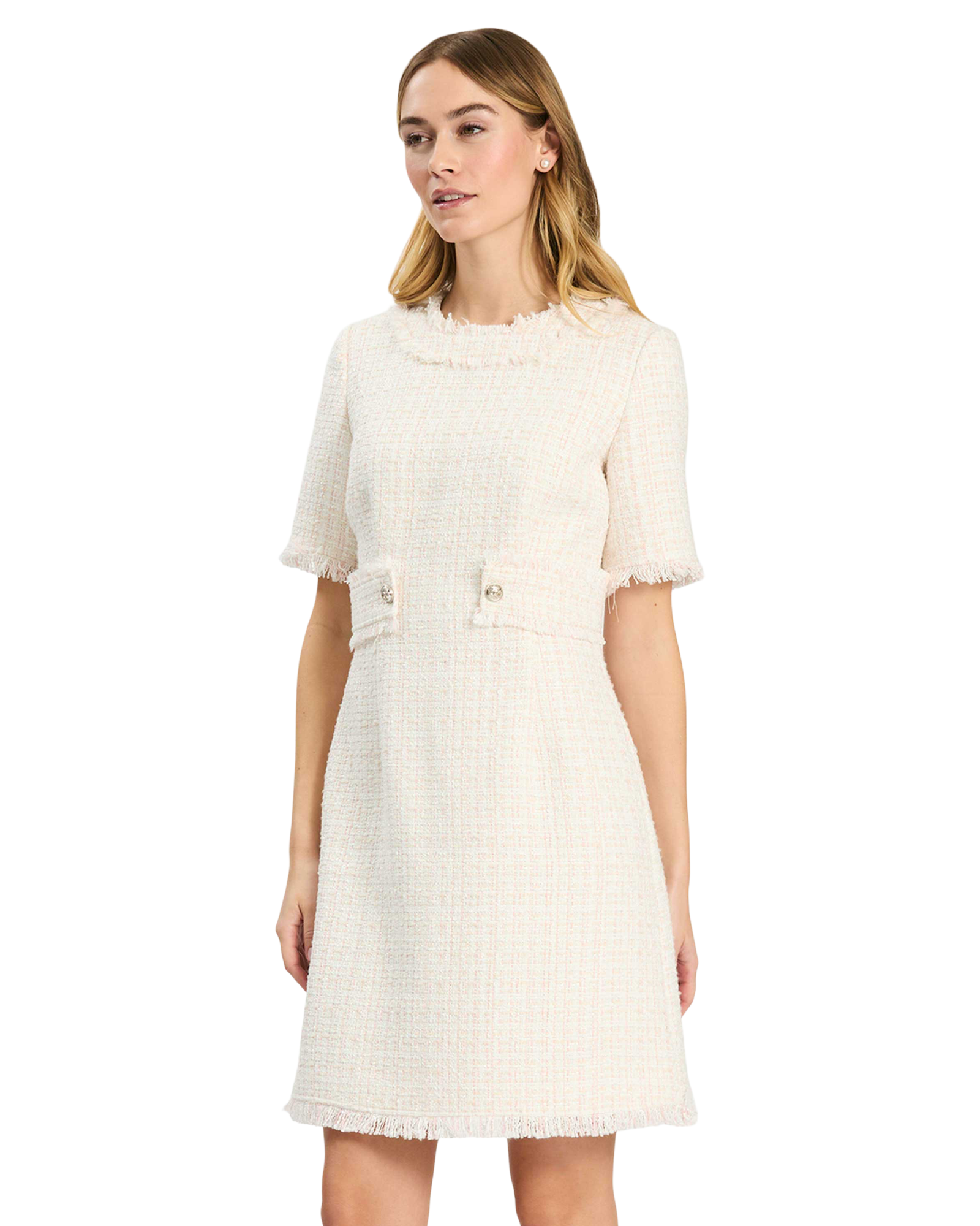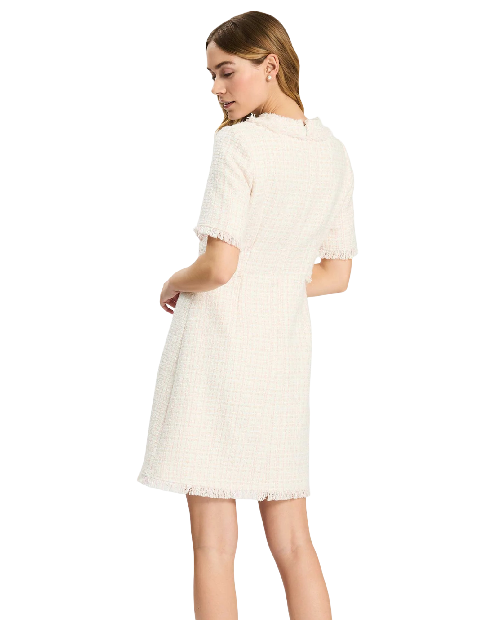• Fringe trim at neckline, sleeves, and hem
