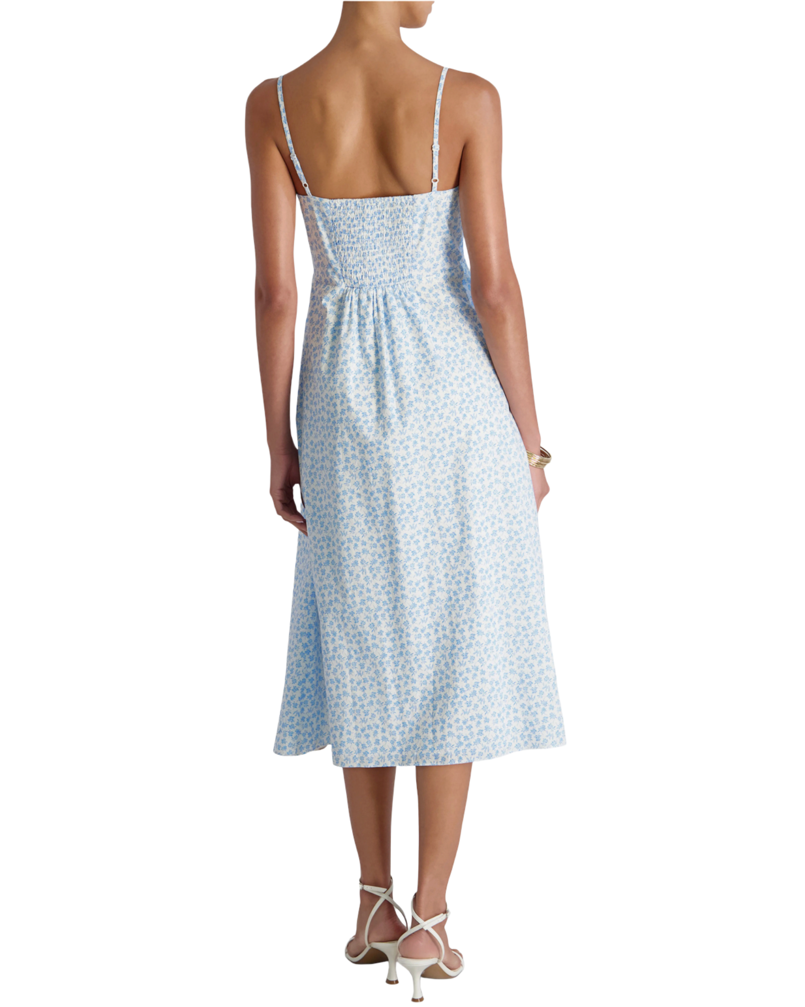 Rhodes Poplin Floral Midi Dress- White + Poolside
