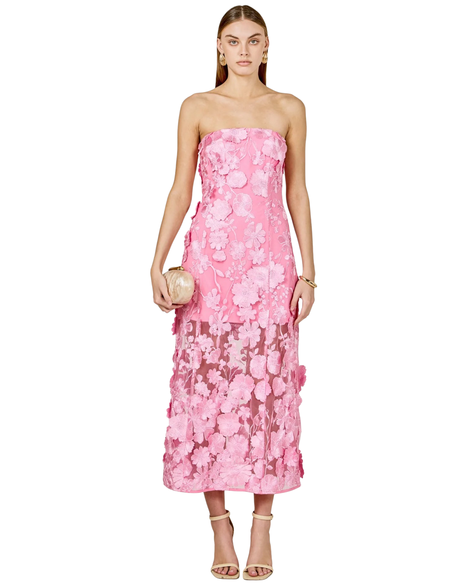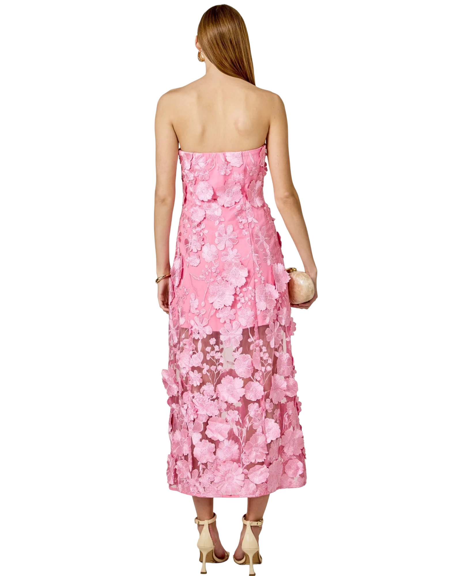 Strapless Floral Embroidered Maxi Dress- Peony Pink