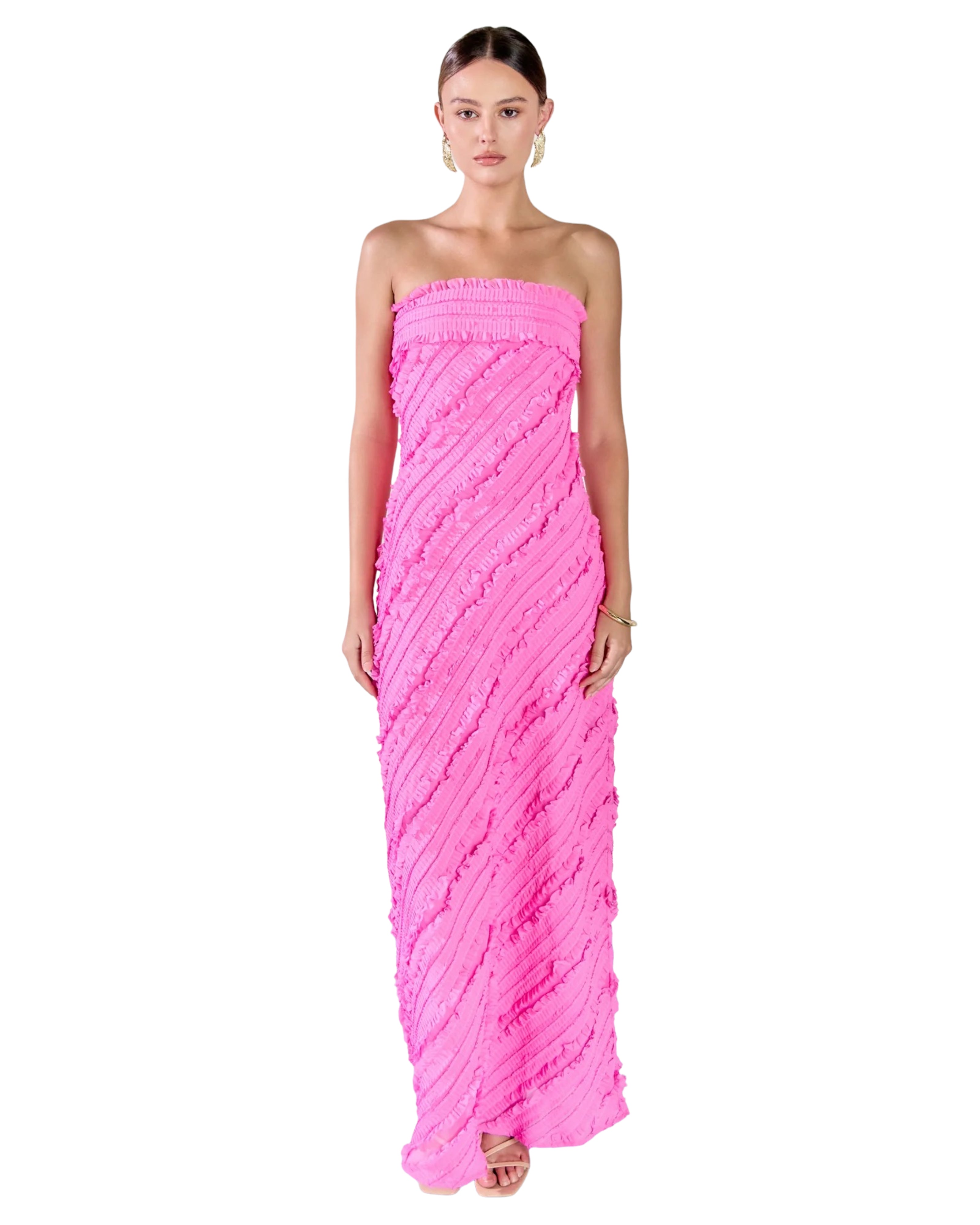 Strapless Ruffled Maxi Dress- Hot Pink