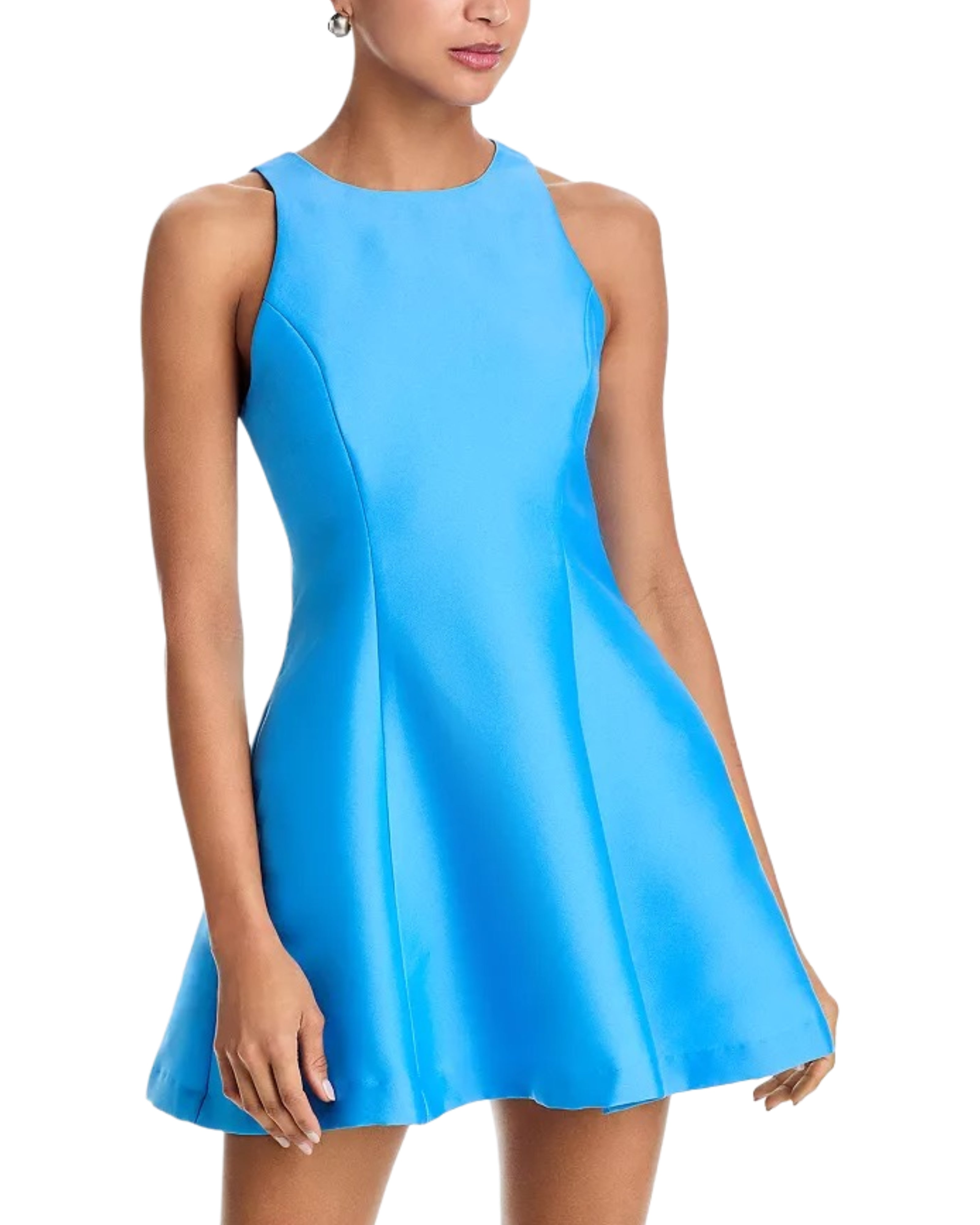 Structured Taffeta Flare Dress- Pool Blue