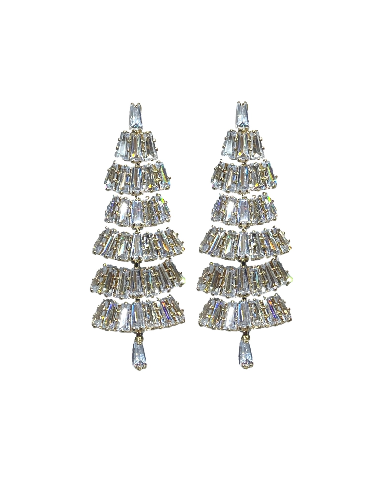 Baguette Crystal Christmas Tree Holiday Statement Earrings