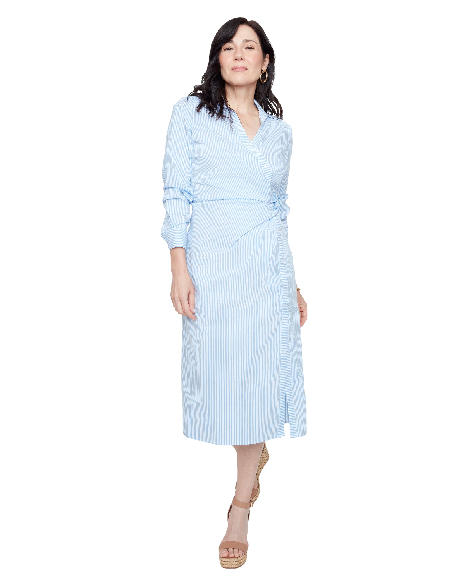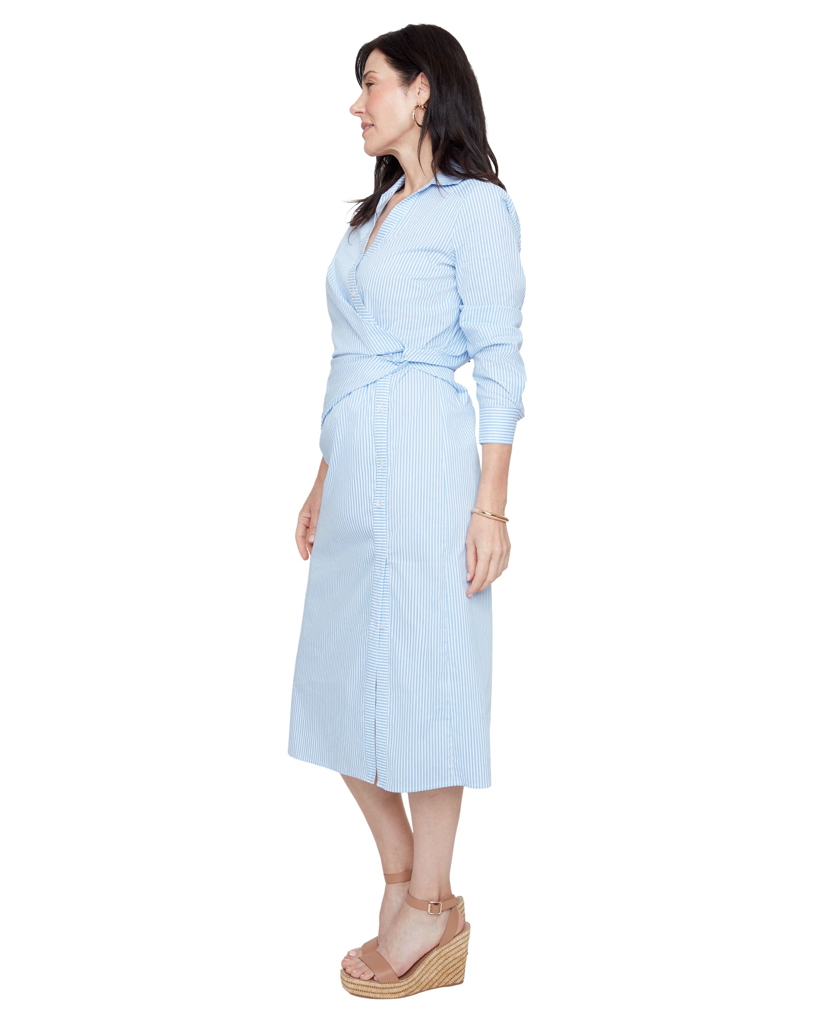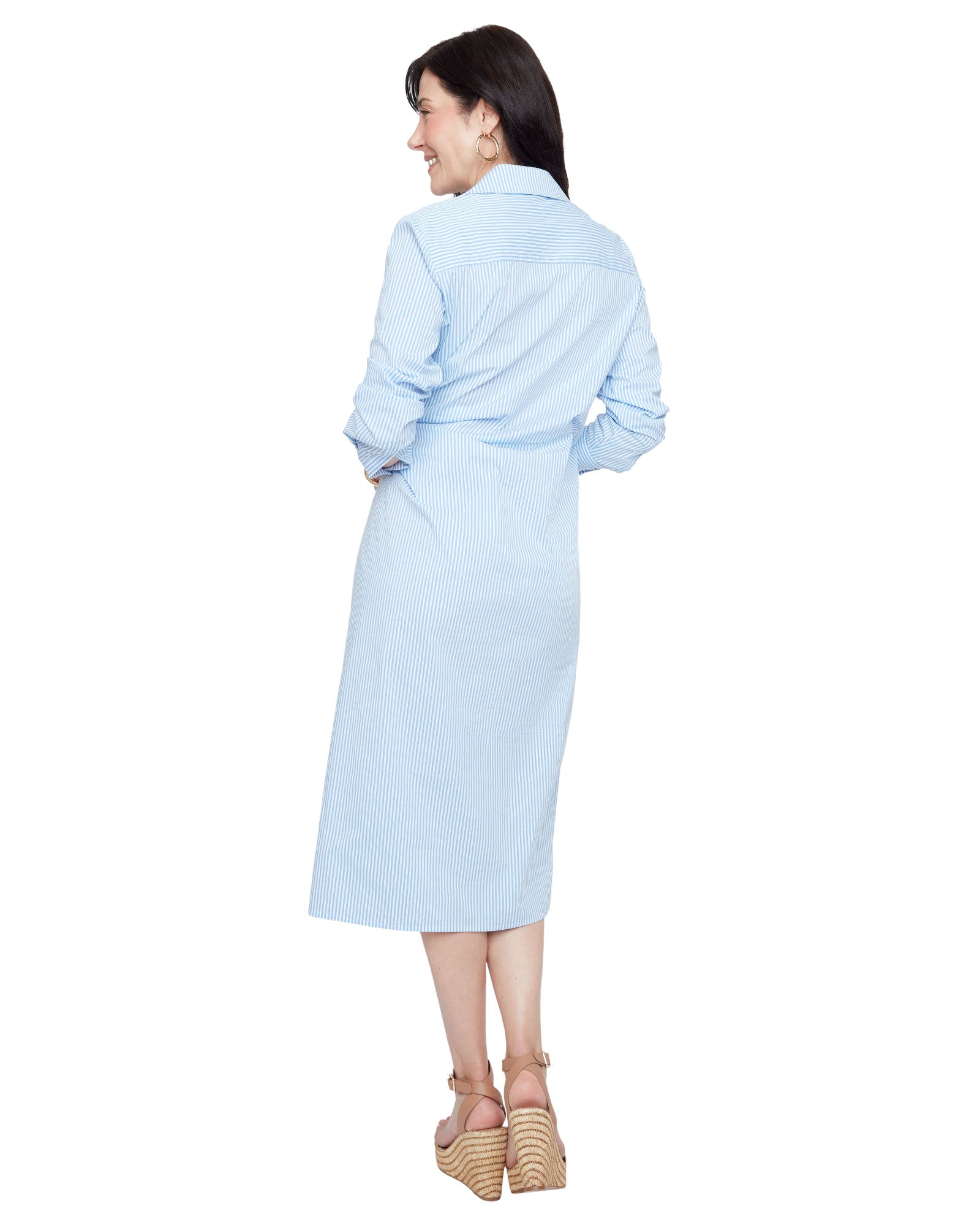Blue Stripe Button Down Midi Dress