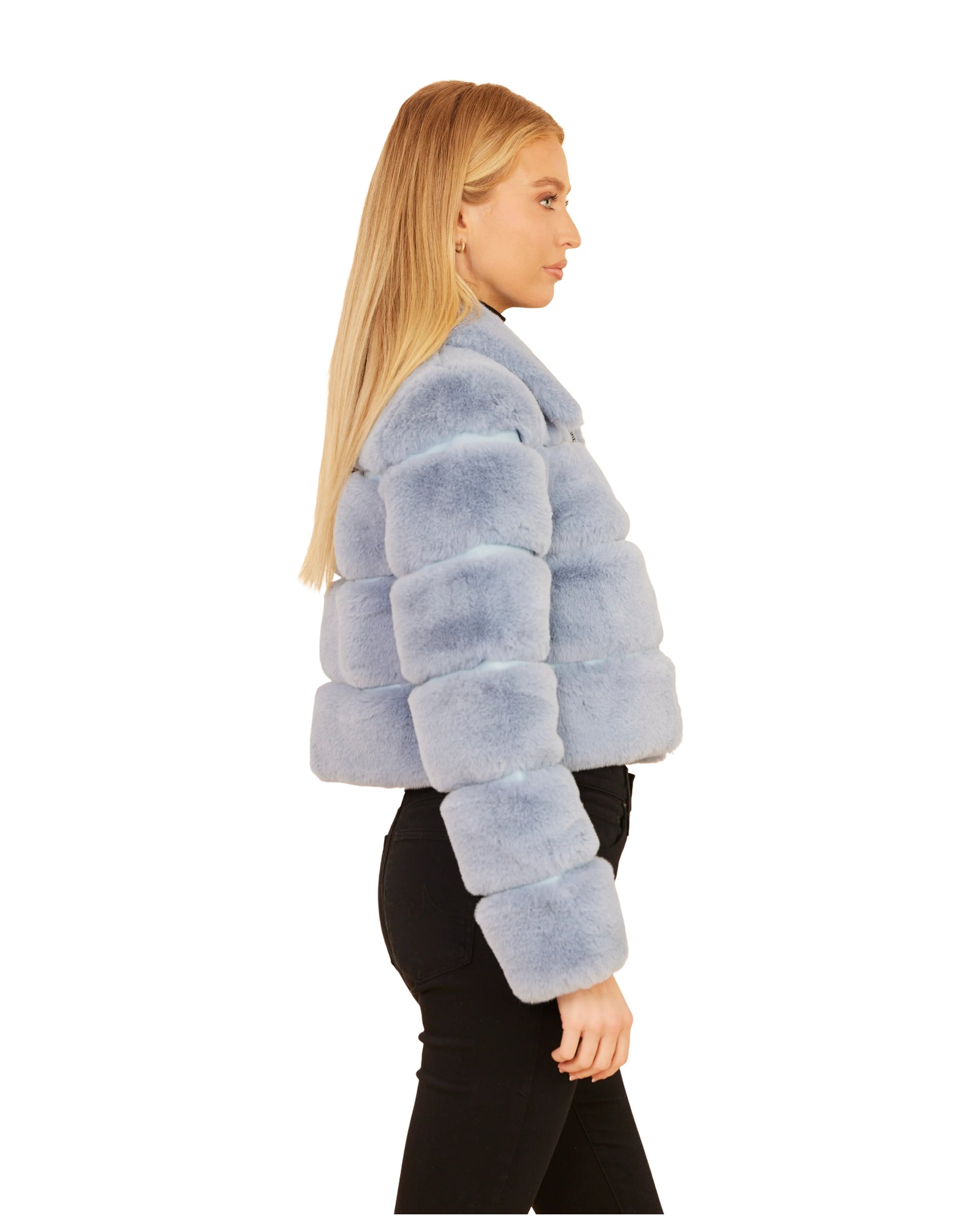 Faux Leather & Fur Cropped Zip Jacket- Blue
