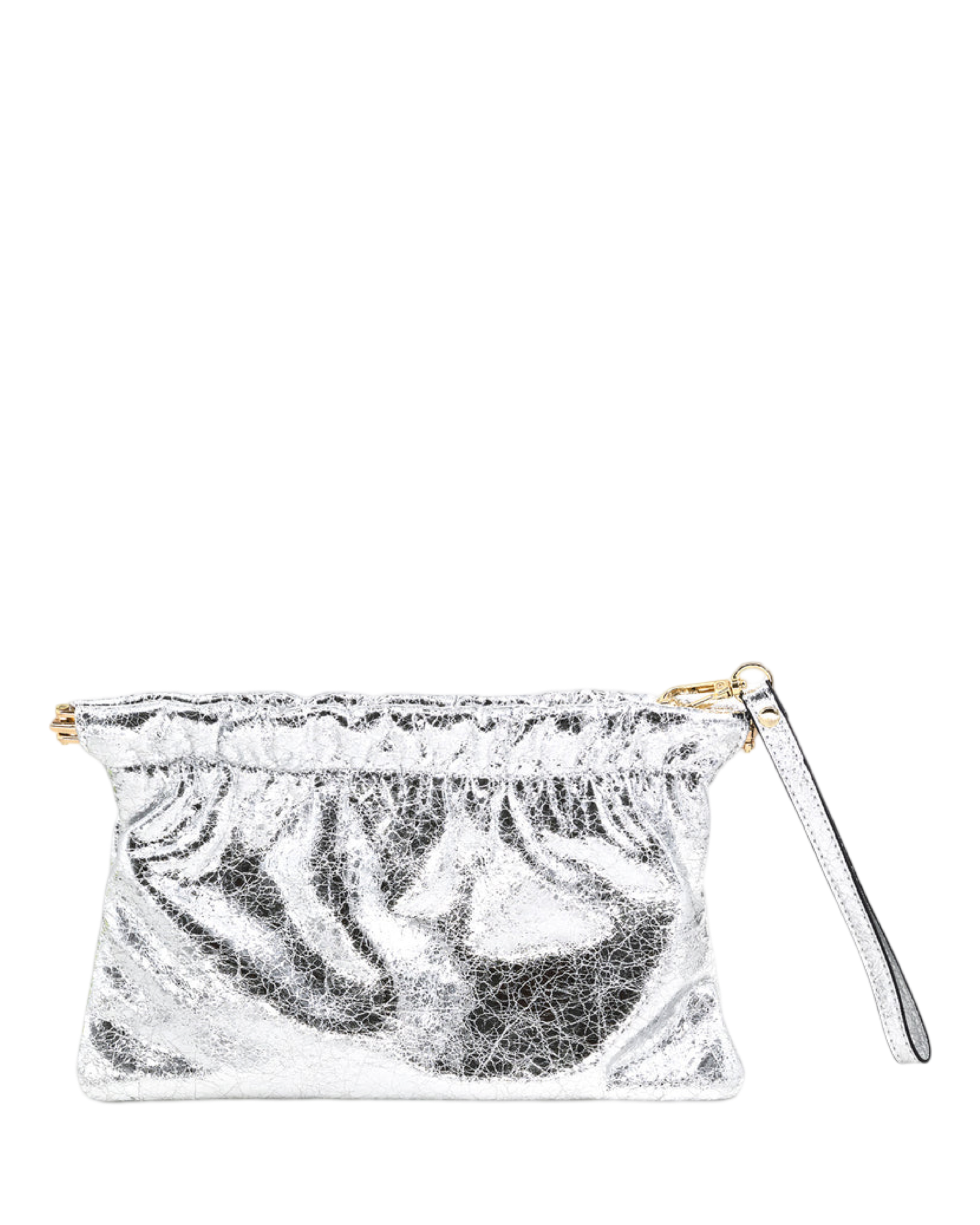 • Can be worn as a clutch, wristlet, shoulder, or crossbody bag