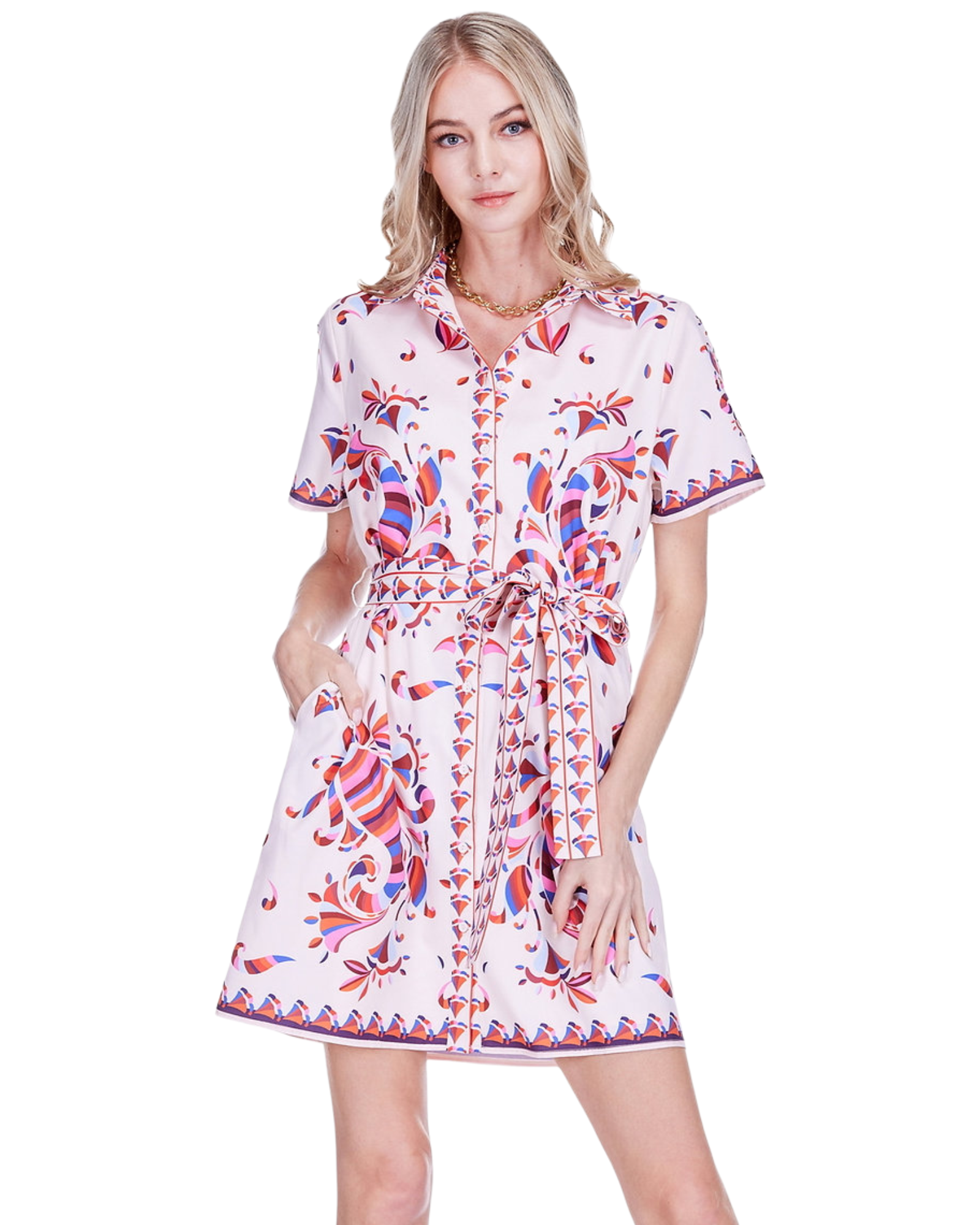 Retro Floral Short Sleeve Shirtdress