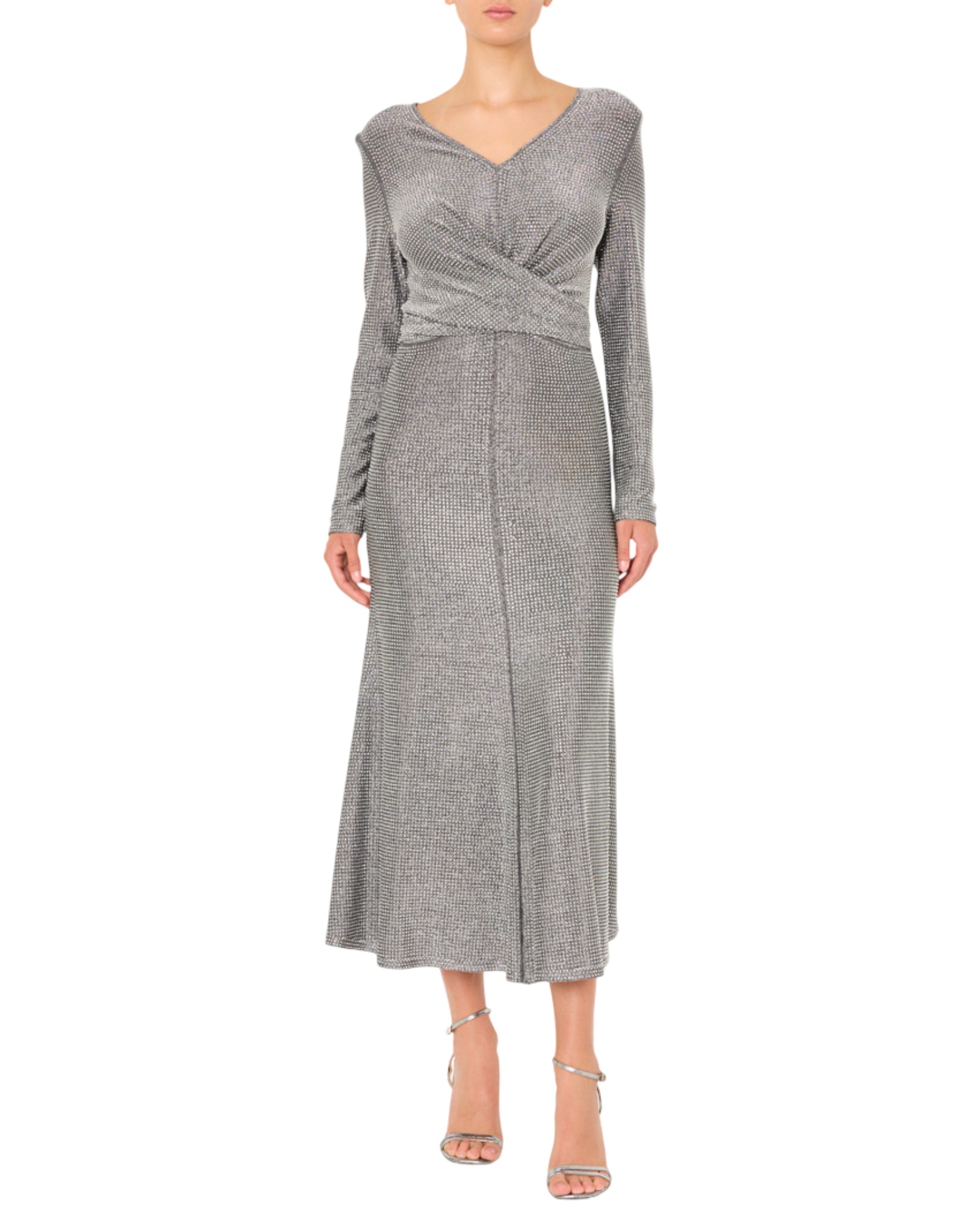 Rhys Mesh Velvet V-Neck Wrap Dress- Silver