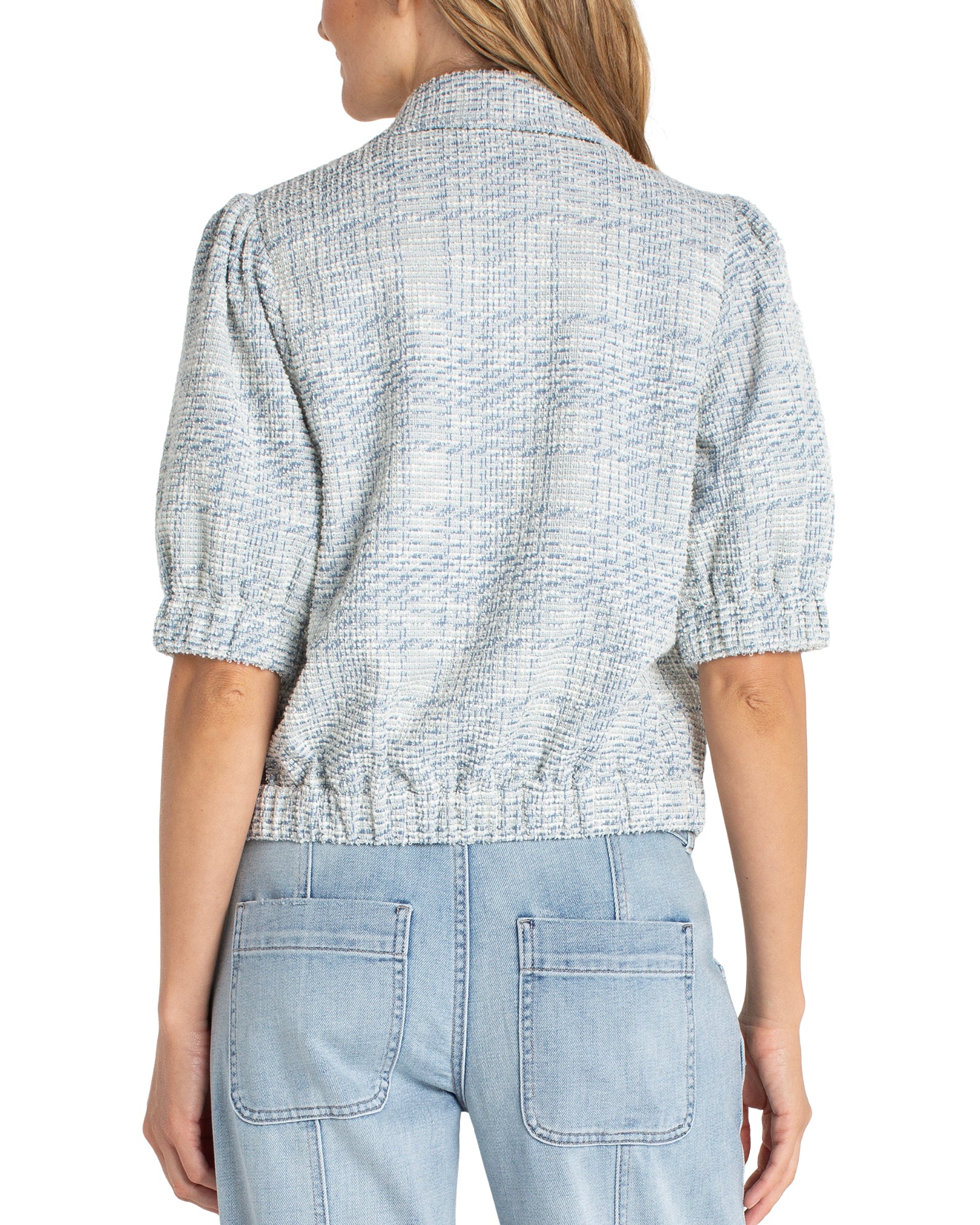 Short Puff Sleeve Jacket- Blue Plaid