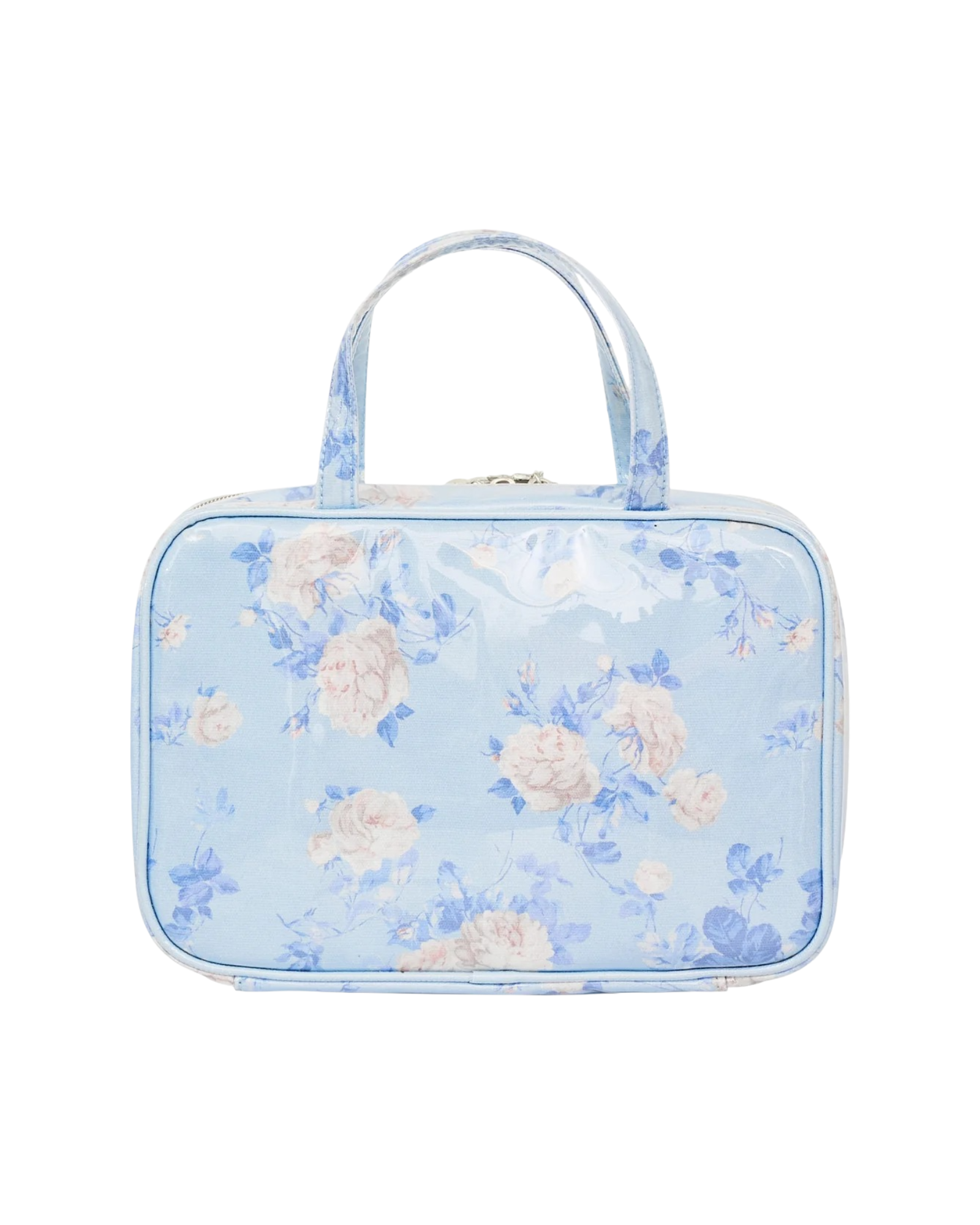 Designed to carry all of your cosmetics, trinkets, and treasures, this chic on-the-go bag features durable handles for easy-carry, ample room and pockets to store your pieces, and is closed with a zipper.
