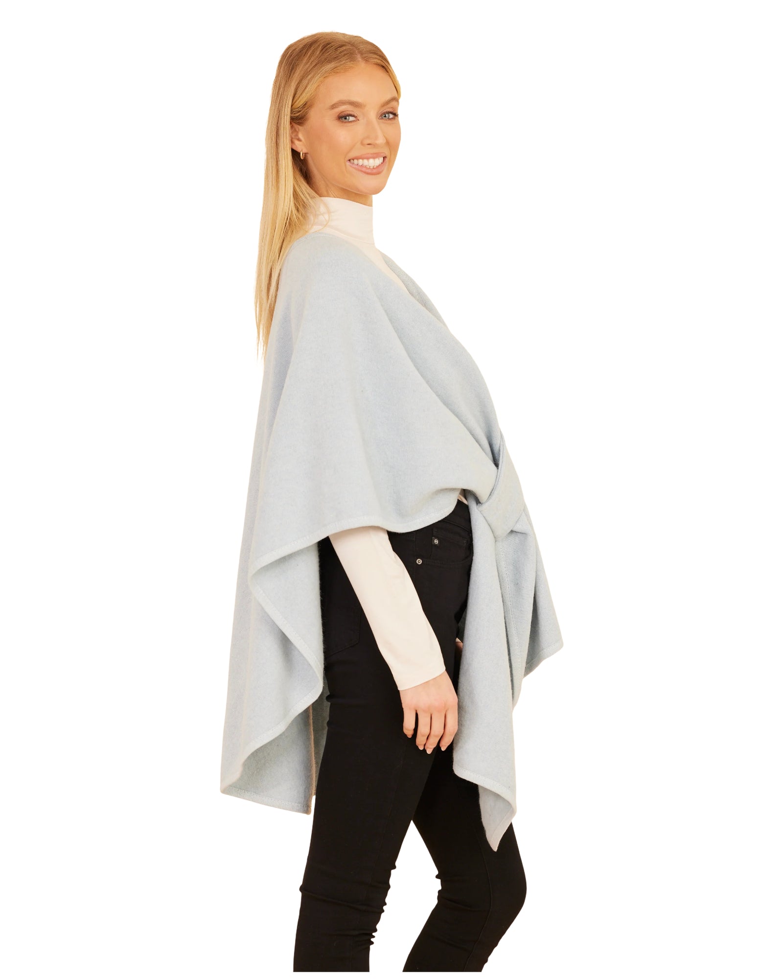 Designed with a pull-through front closure, the Pull Through Wrap boasts a chic asymmetrical silhouette, blending the best elements of a cape, poncho, and shawl. Its soft knit makes it perfect for fall, ensuring you remain both cozy and fashion-forward.