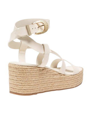 Mohan T-Strap Wedge Sandal- Ecru Nappa