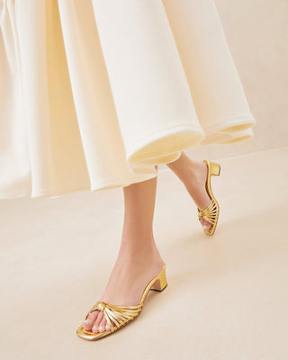 Hazel Knot Mid-Heel Mule Sandal- Gold