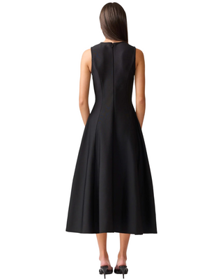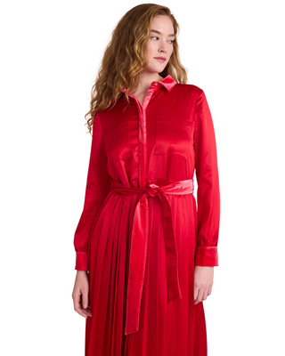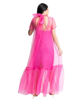 Organza Mock Neck Bow Maxi Dress- Bright Pink