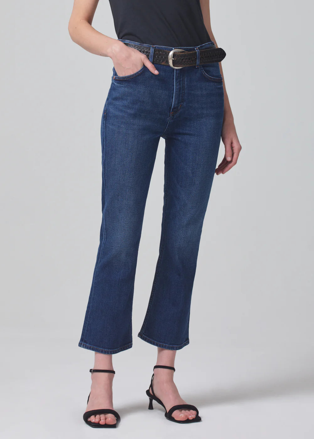The Isola features a flattering mid rise with a close fit through the leg and subtle bootcut flare. This cropped fit hits right above the ankle, making them the perfect pair to show off your shoe of choice. This transitional style is sure to be your new closet staple.