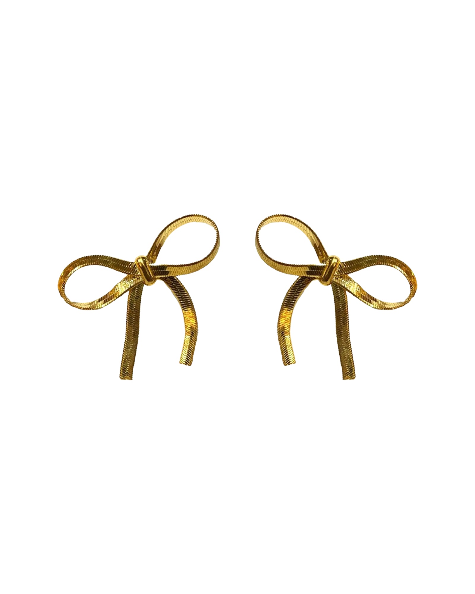 • A delicate gold bow with a sleek, skinny drop