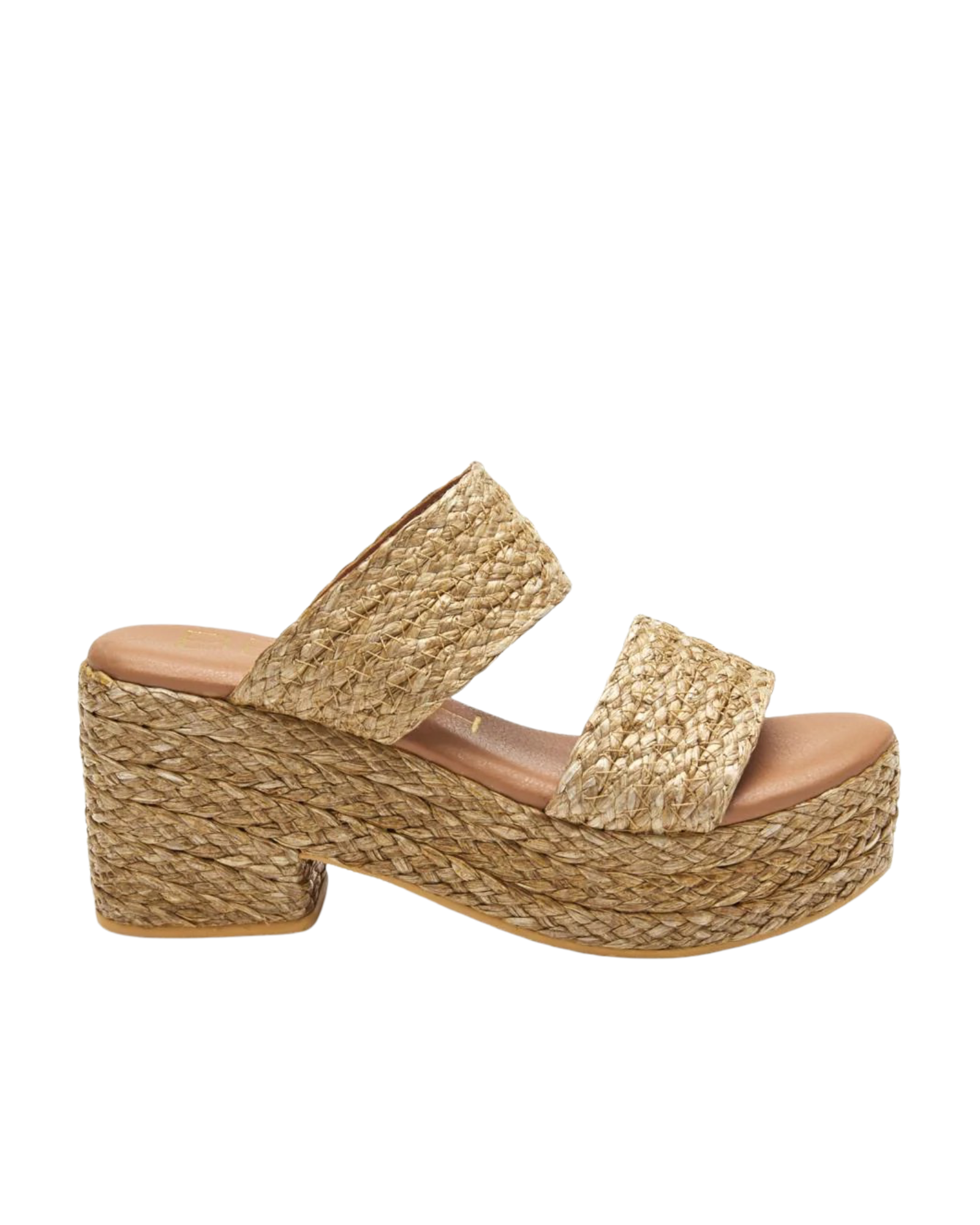 • Braided raffia upper.